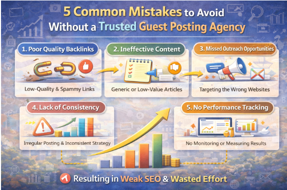 Knowing these common mistakes will help businesses identify why structured support is crucial and how the approach ensures the success of business growth. Here are the five major mistakes that commonly occur when guest blogging support is not professional: